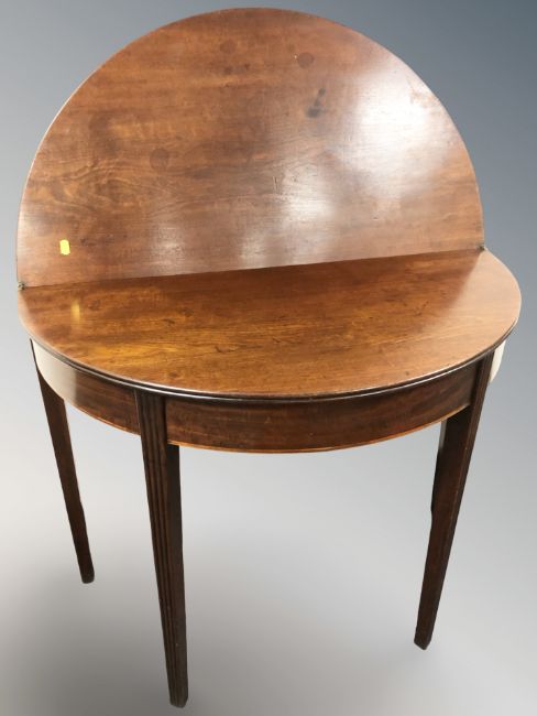 A 19th century mahogany demi-lune tea table, width 93 cm