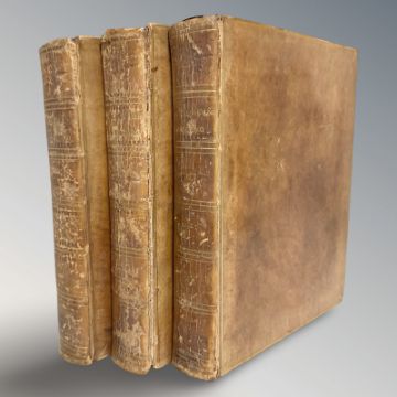 Hutchinson, William F.A.S. : The History and Antiquities of the County Palatine of Durham, volumes I, II & III, published Newcastle 1785, full leather binding. (3)
