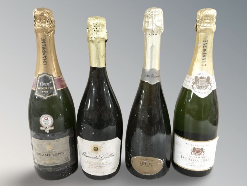 Four bottles of Champagne including Nicolas De Montbart, Alessandro Gallici, etc.
