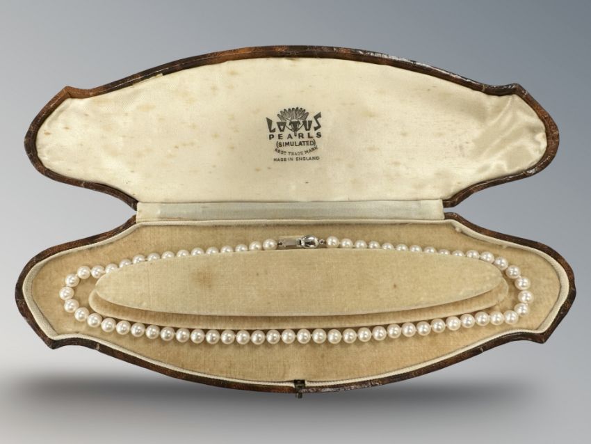 A pearl necklace on 9ct white gold clasp, length 45 cm