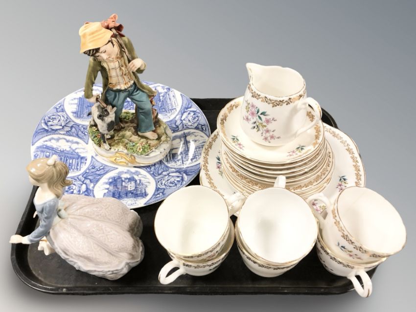 A Royal Grafton part tea service, a Lladro figure of a girl with parasol, an Italian bisque figure of a boy and a Newcastle Chronicle and Journal Limited blue and white transfer printed plate.