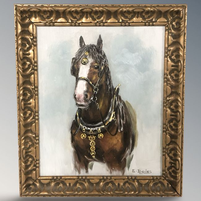 Ella Bailes (British, Contemporary) Study of a shire horse, oil on board, 29 cm x 24 cm.