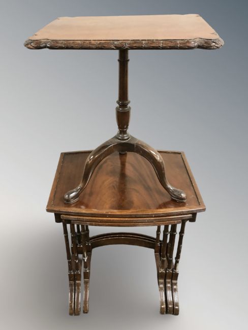 A mahogany nest of three tables, width 52 cm and a further George III style tripod table
