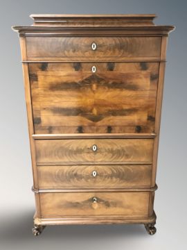 A 19th century continental walnut secretaire cabinet, 102 cm W x 50 cm D x 160 cm H.