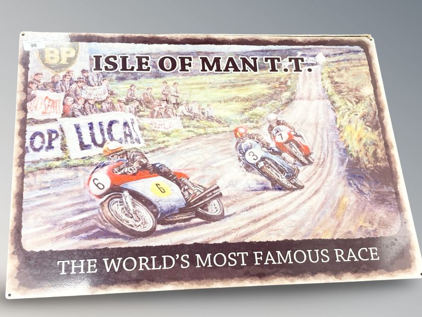 A reproduction tin sign - Isle of Man T.T, 70 cm x 50 cm