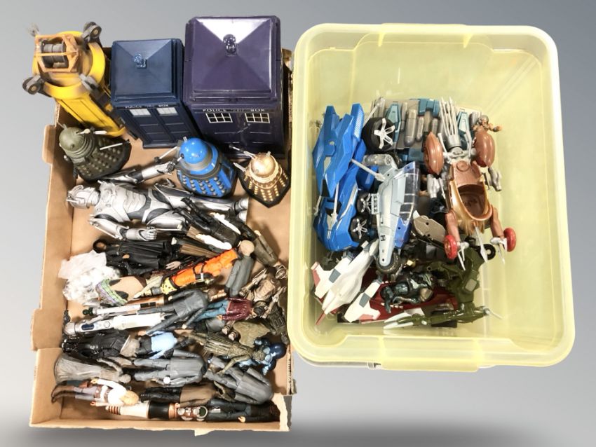 A group of Doctor Who and Thundercats toys. (2 boxes)