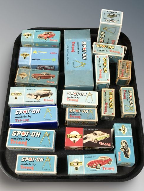 A group of reproduction Tri-Ang Spot-On die cast models in boxes.