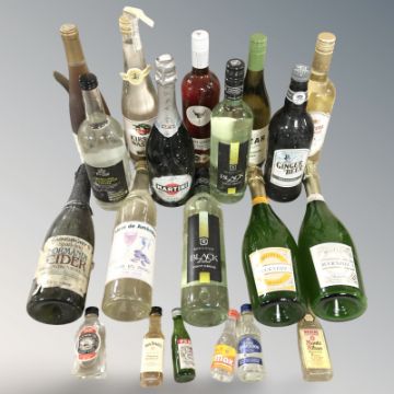 Assorted bottles of alcohol and miniatures including white win, gin, whisky, etc. (1 box)