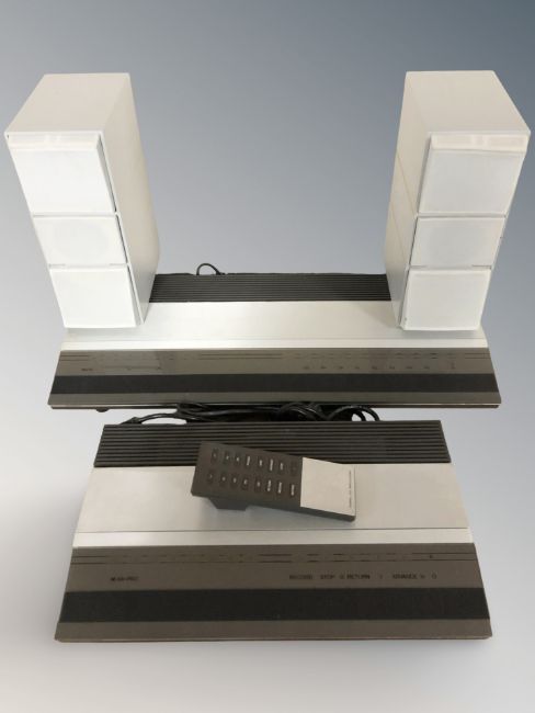 A Bang & Olufsen Beocord 3300 with remote, a Beomaster 3300 and a pair of Beovox CX100 speakers. (continental plugs)