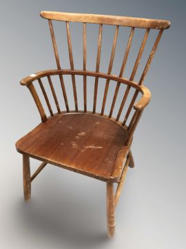 A beech spindle back armchair.
