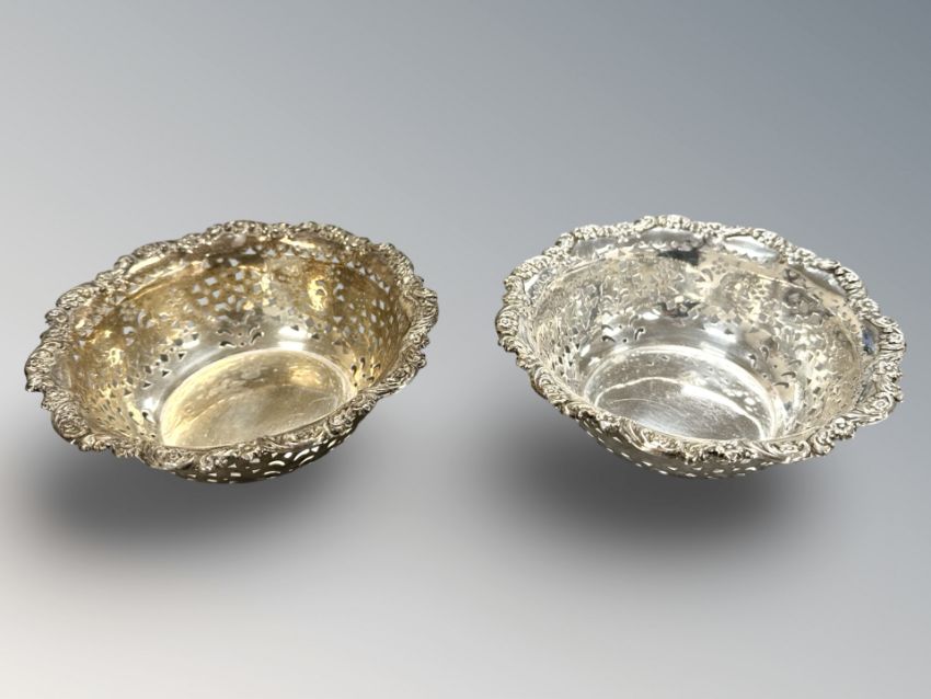 A pair of late-Victorian/Edwardian pierced silver bonbon dishes, William Devenport, Sheffield 1901, diameter 14.5cm.