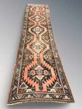 An antique Karabagh runner, South Caucasus, 420 cm x 103 cm.