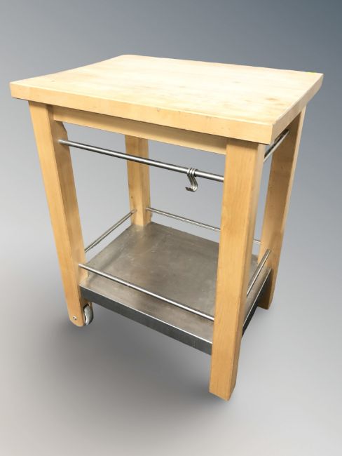 A modern butcher's block table, width 65 cm