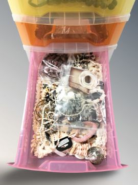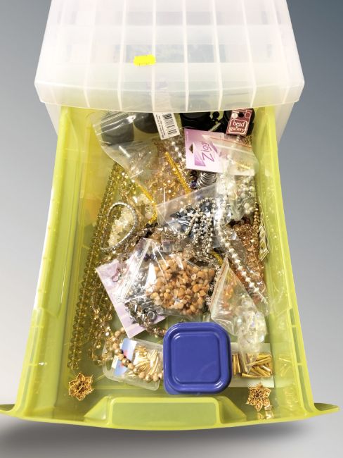 A plastic eleven drawer chest containing a large quantity of costume jewellery.