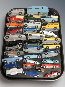 A collection of reproduction unboxed 1:42 scale die cast Spot-On by Tri-Ang die cast vehicles.