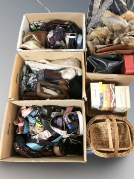 A large quantity of lady's handbags, belts, wicker baskets, fur coat etc (one pallet)