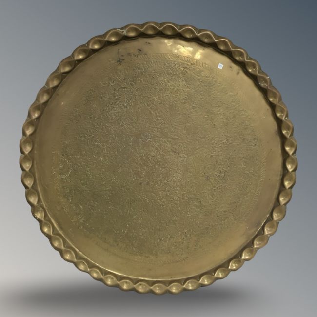A large brass plaque or charger