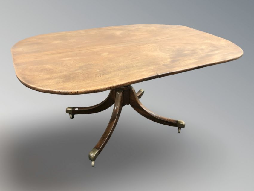 A George III rectangular mahogany pedestal dining table, 150 cm x 110 cm x 69 cm high