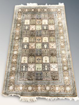 A fine Indian silk rug of compartmentalised garden design, 160 cm x 91 cm