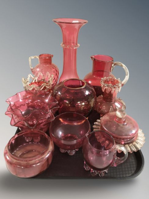 A group of Victorian cranberry glass.