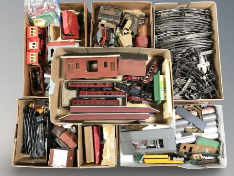 A large quantity of model railway buildings, track, locomotives and passenger cars, etc. (1 pallet)