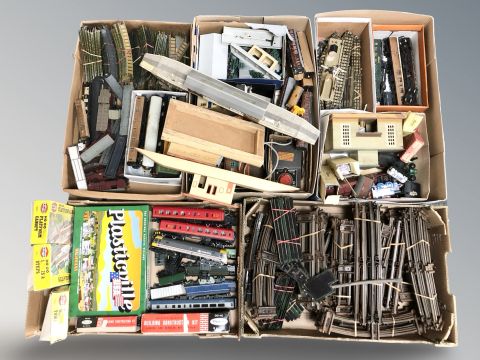 A large quantity of die cast rolling stock, Airfix model railway modelling kits, buildings etc (one pallet)