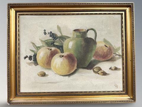 Danish School : Still life with fruit, oil on canvas, 29 cm x 22 cm.