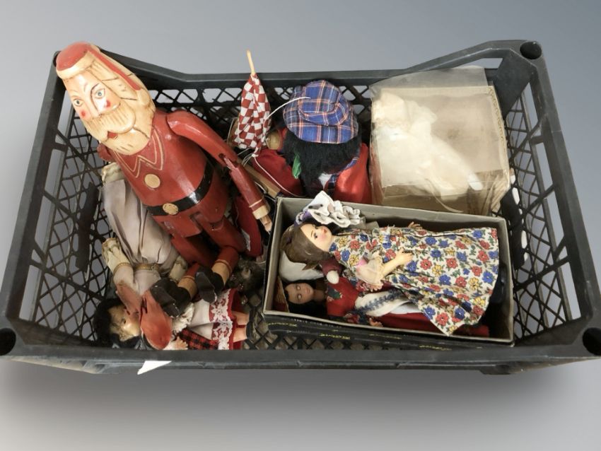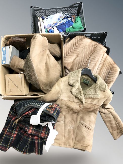 A suede jacket, silk scarves, further clothing, dolls, etc. (4 boxes)