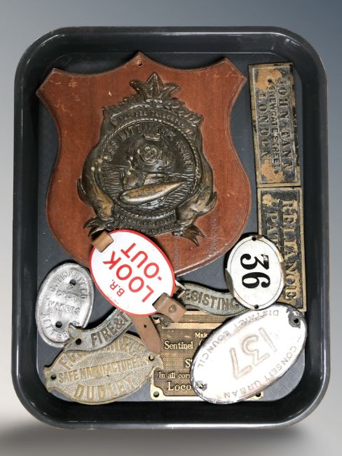 A group of brass and other metal plaques.