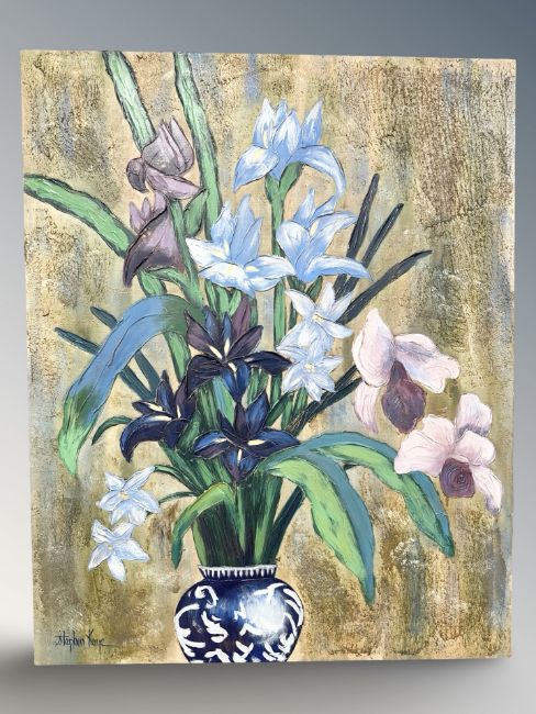 Stephen Kaye : Still life with flowers in a vase, oil on canvas, 102 cm x 127 cm.