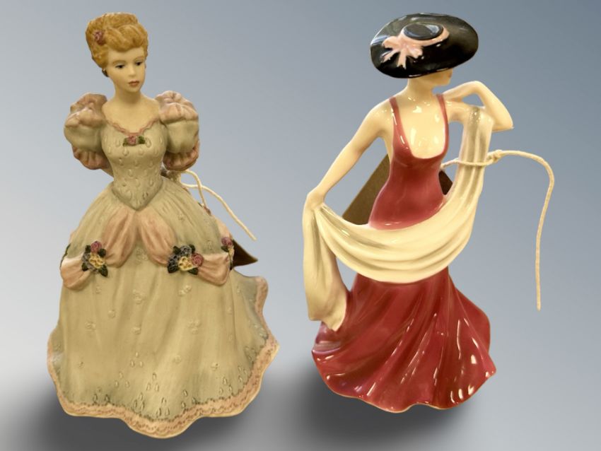 Two Coalport china figures : Beau Monde Deborah and Poppy, heights 13 cm and 14 cm. (2)