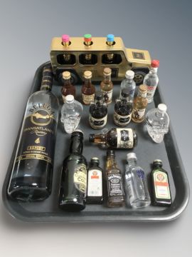 A bottle of Beluga Russian vodka, 0.7L, several modern alcohol miniatures including Hennessey, Jack Daniels, etc, and an Au vodka three bottle set.