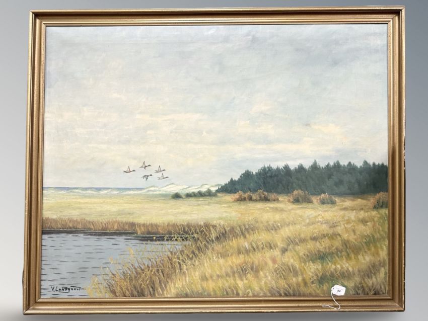 Danish School : Boats by a marshland, oil on canvas, 114 cm x 90 cm.