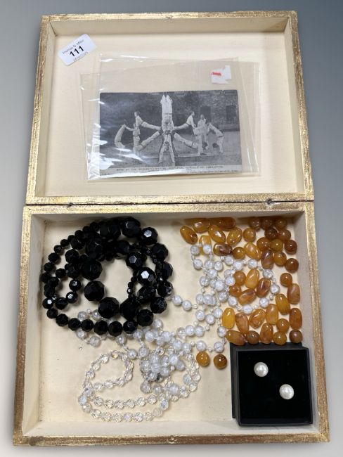 A rare 1904 postcard depicting Boys of the Newcastle upon Tyne Industrial Schools at Gymnastics , together with further jewellery and beads.