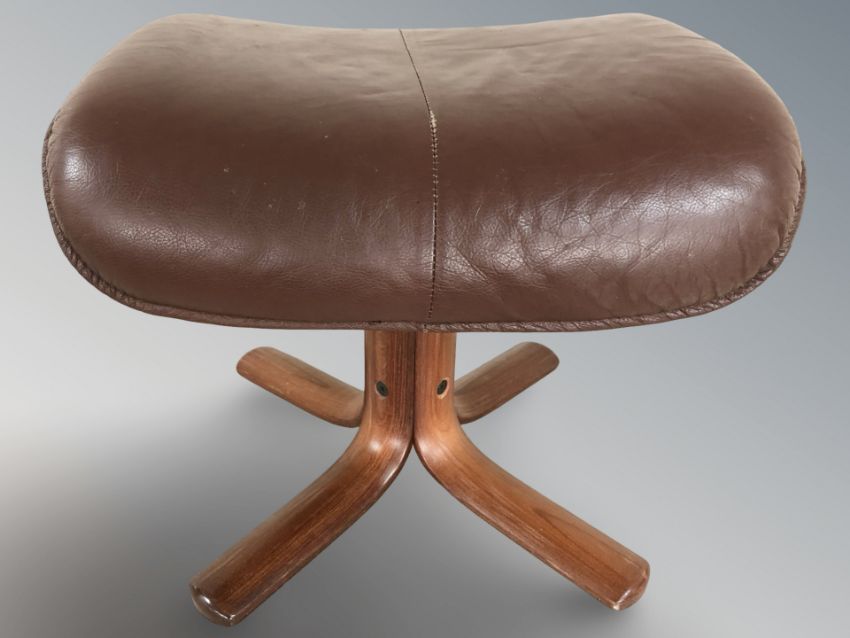 A Scandinavian bentwood and stitched leather footstool.
