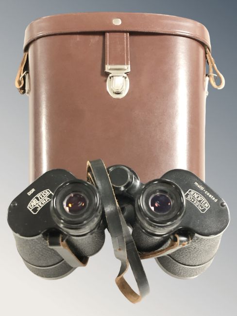 A pair of Carl Zeiss Jena Jenoptem 10x50W binoculars in leather case.