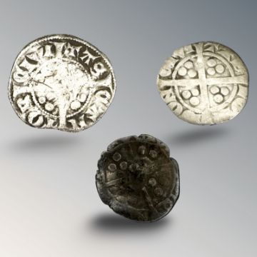 An Edward I (1272-1307) silver long cross penny, London Mint, another of the Canterbury Mint, plus a further penny, believed Edward IV (second reign), York Mint. Generally good/fine, (3).