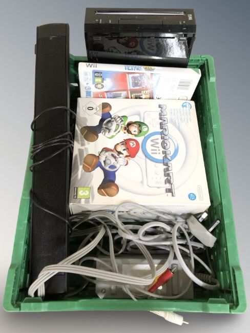 A Nintendo Wii console, etc, together with a sound bar. (1 box)