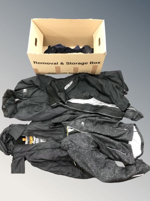 Several outdoor coats including Superdry, Karrimor, etc. (1 box)