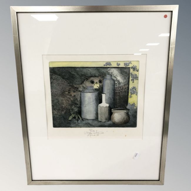 H Rink : Study I, Still life with owl, watercolour, 19 cm x 24 cm, signed in pencil to margin and dated '93.