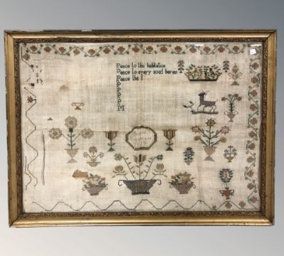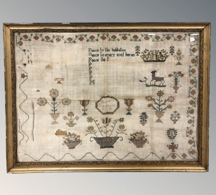 A Regency sampler, indistinctly signed and dated 1819, in frame, overall 45 cm x 60 cm.