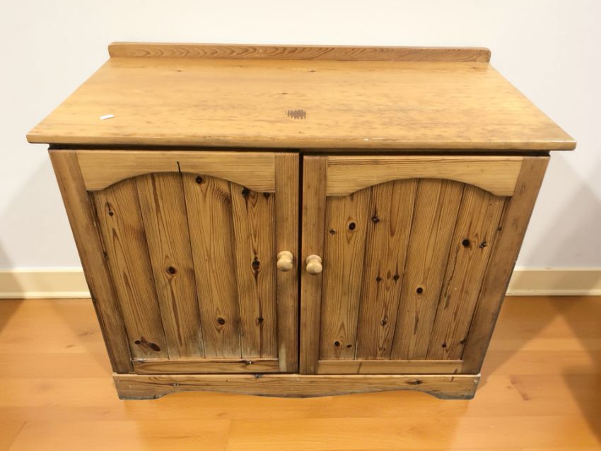 A 20th century pine double door side cabinet, 96 cm x 49 cm x 76 cm.