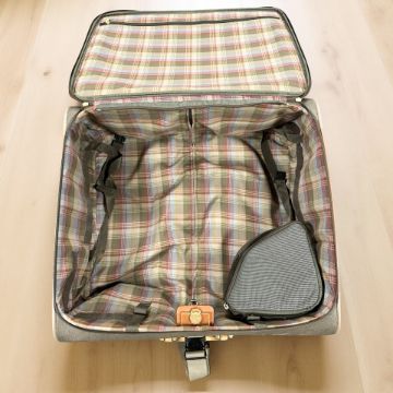 A Mulberry Mole Scotchgrain Rolling Suitcase, with chestnut leather trim, retractable handle, 60 cm x 56 cm x 29 cm.