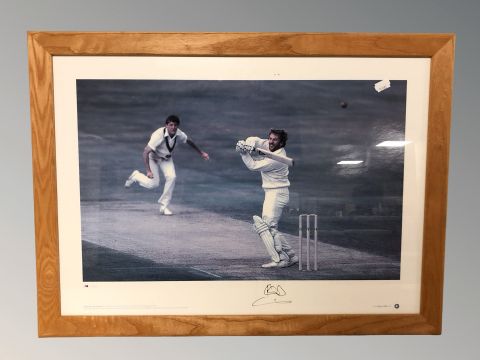 A group of seven sporting photographic prints relating to the 1966 World Cup, rugby, cricket and the Grand National, with various signatures, largest 49 cm x 66 cm overall.