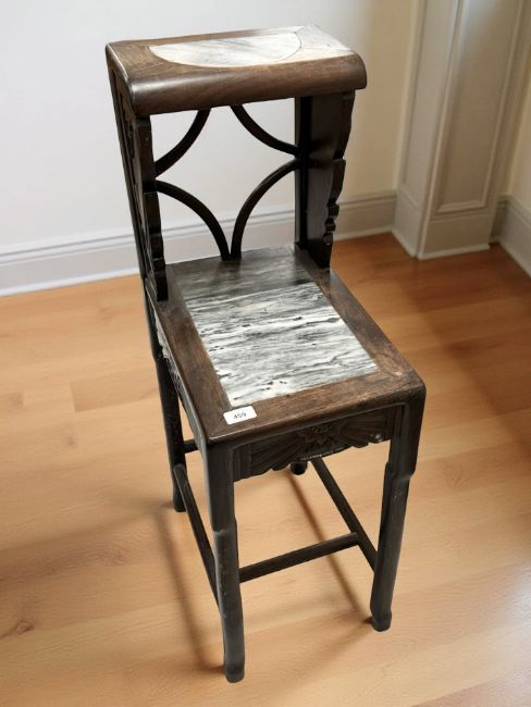 A Chinese rosewood and marble inset two-tier stand, height 95 cm