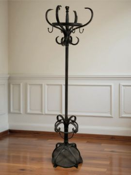 A wrought metal hat and coat stand