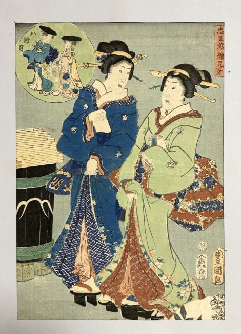 Utagawa Kunisada (Toyokuni III) (Japanese 1786 - 1864) Kaga no Chiyo, from the series "Famous Women from Ancient and Modern Times" c. 1860, colour woodblock print, 34 cm x 22 cm (unframed)