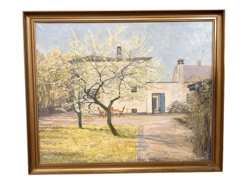 N Krystiense : Building with a courtyard, oil on canvas, 79 cm x 63 cm.