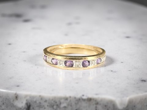 A 9ct gold amethyst and diamond ring, size O