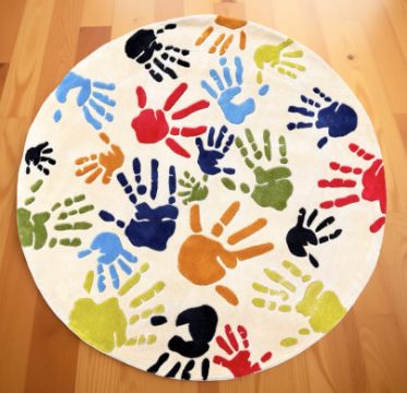 A brand new children's hand prints pattern circular rug, diameter 150 cm.